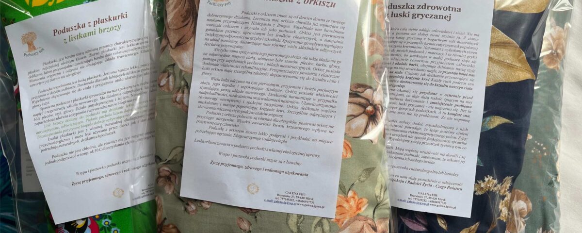 Dziś pragnę pokazać poduszki, które już są zapakowane i mają ulotkę informacyjną. Tak właśnie oprawiona poduszka trafia do paczki i jest wysyłana w podróż do Odbiorcy. Zatem jeśli ktoś martwi się o to, że np. jako prezent nie wygląda atrakcyjnie, to powiem: wygląda atrakcyjnie. Wystarczy ją tylko włożyć do torby prezentowej i wręczyć. Poza tym jeśli to jest poduszka zapachowa to subtelny zapach zostaje zatrzymany w celofanowym opakowaniu i otwierający czuje jej naturalny aromat. To też miłe doświadczenie. Tym bardziej, że wszystkie dodatki są naturalne czyli prosto z pól. Pachnąca lawenda, listki brzozy czy dębu, liść melisy czy szyszki chmielu. Natura zebrana w poduszce, ubrana w bawełnianą lub lnianą poszewkę i zapakowana w celofan idzie w świat do wybrańców, którzy pragną doświadczyć jej dobroczynnego działania. A tymczasem na polach dojrzewają tegoroczne zboża i zioła, i już niebawem będą wędrować do Was Drodzy Poduszkowcy
